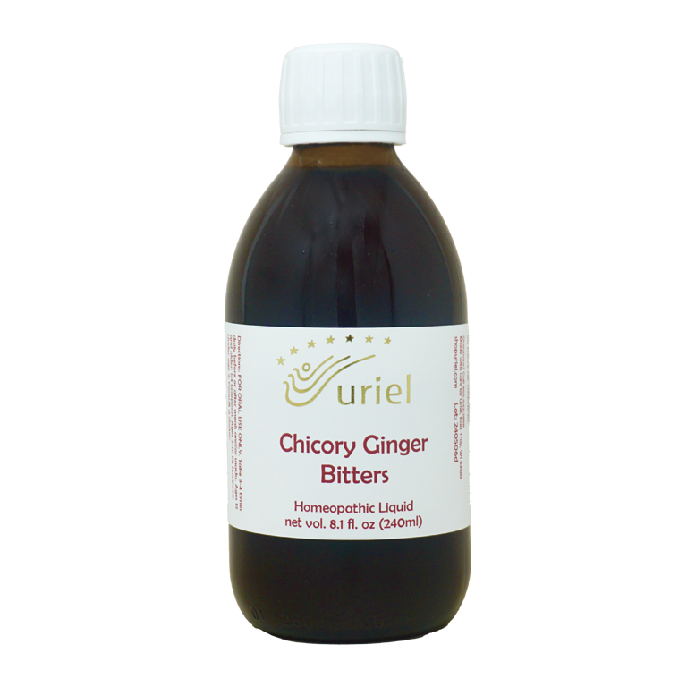 Our Chicory Ginger Bitters provide homeopathic digestive support for everyday stress. Chicory Ginger Bitters are also good for mental focus and mental fatigue due to travel (commuting, jet lag), lack of exercise or stress, as well as sleepiness and poor concentration. This remedy comes in a 240-ml bottle; we also offer this product in a 60-ml bottle.